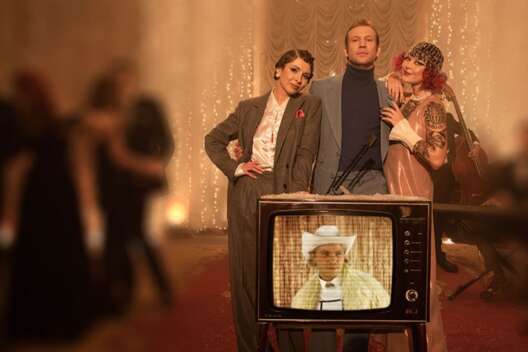 «Новорічні вітання» – атмосферный мини-мюзикл, который мгновенно заряжает праздничной атмосферой: хочется взять бокал, подпевать хору и пуститься в пляс вместе с Ваней и его артистами. Образы музыкантов переносят в эпоху ар-деко с ее шиком, любовью к головным уборам и украшениям, сверкающим платьям и укладкам в стиле «голливудская волна». Режиссером видео выступил Тарас Голубков.