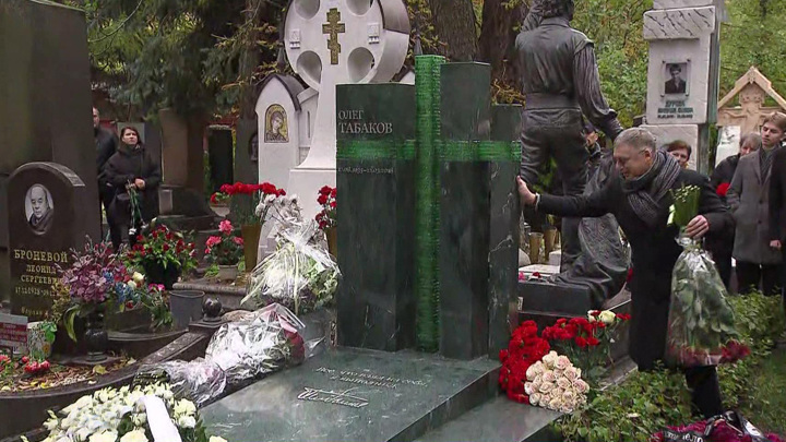 Новый памятник установили на могиле знаменитого артиста Олега Табакова на Новодевичьем кладбище в Москве. На церемонии открытия собрались его родные, друзья, коллеги и ученики.
