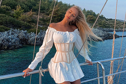 Украинка также поделилась кадрами в Instagram, на которых она позирует с распущенными волосами на борту яхты в прозрачном корсете поверх короткого белого платья. Решетова, в свою очередь, снималась в аналогичном наряде бежевого цвета на территории виллы во время летнего отдыха.