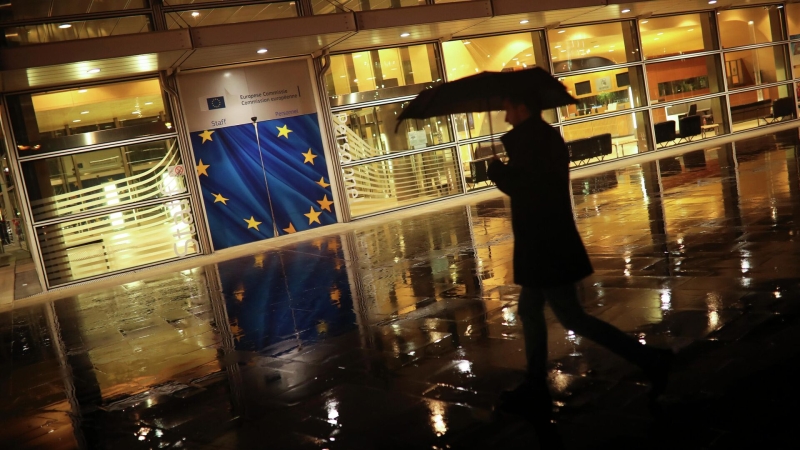 Прохожий у штаб-квартиры Европейской комиссии в Брюсселе. Архивное фотоДзен